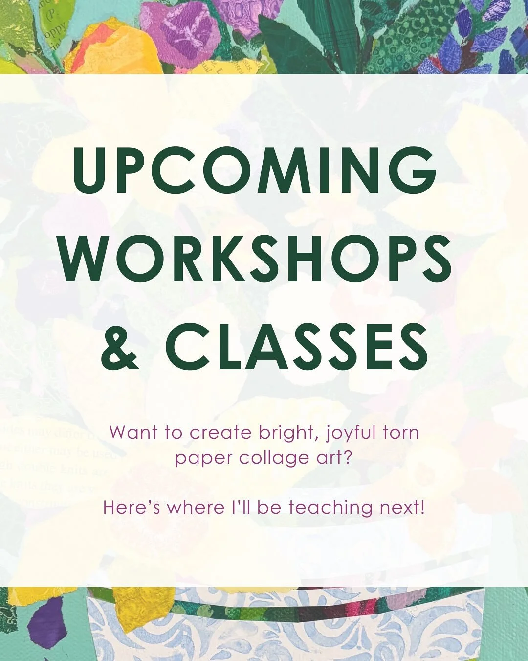 Want to try out torn paper collage? Check out my upcoming classes or host your own workshop with a Petals & Paper Collage Party at your house!