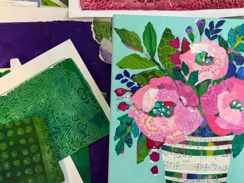 Thank you for taking one of my classes or workshops! This is the place to find the list of my favourite supplies for all things torn paper collage, gel plate printing, and acyclic painting.